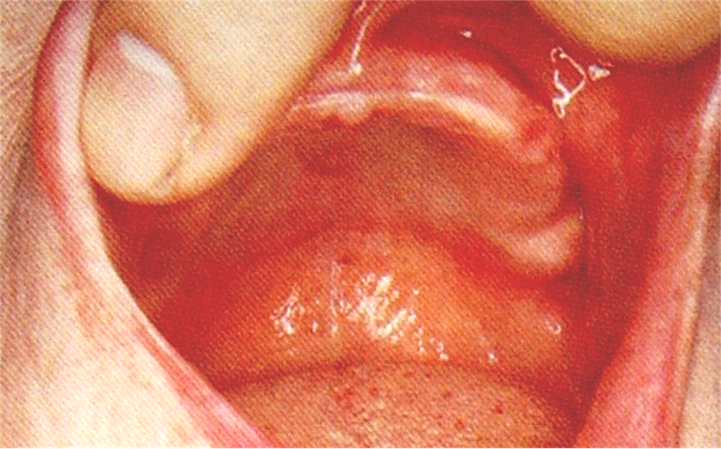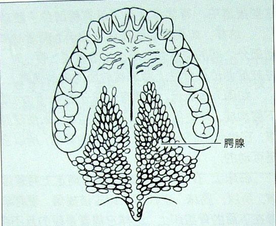 该腺体没有移动性,具有弹性,所以取印膜时应充分加压;在正中缝和牙龈处,粘膜下缺少腺体组织,弹性小,基托在此处应缓冲。