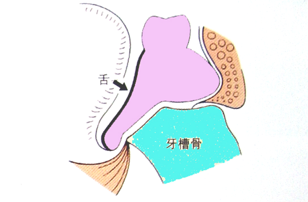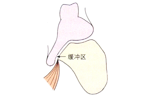 此区有大量疏松结缔组织,与义齿边缘紧密贴合,防止空气进入基托与组织之间,产生良好的边缘封闭作用,从而形成负压和吸附力保证义齿固位。