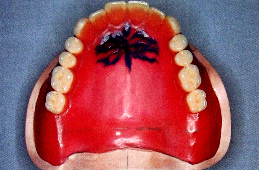 制作义齿时在基托磨光面以蜡仿造腭皱形态