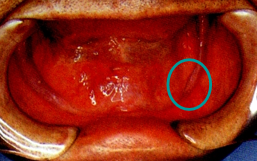连接口底与舌腹的粘膜皱襞,位于口底中线部,活动度较大。
