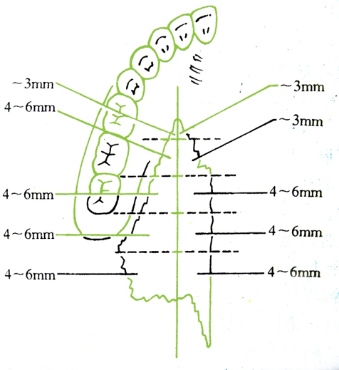 颊舌向:磨牙后垫颊面、舌面向前与下颌尖牙的近中面形成一个三角形。