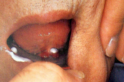 堵住鼻孔用鼻子出气会使软腭向下降,能明确观察到颤动线。