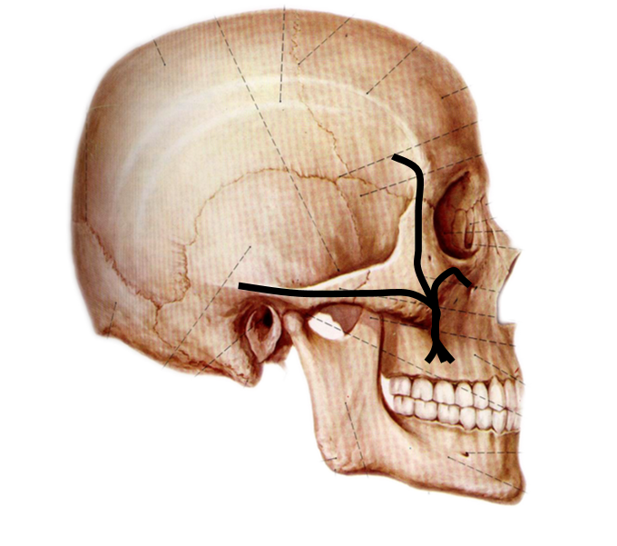 它把加在磨牙上的咀嚼压力分散到眶外侧缘和颧弓。