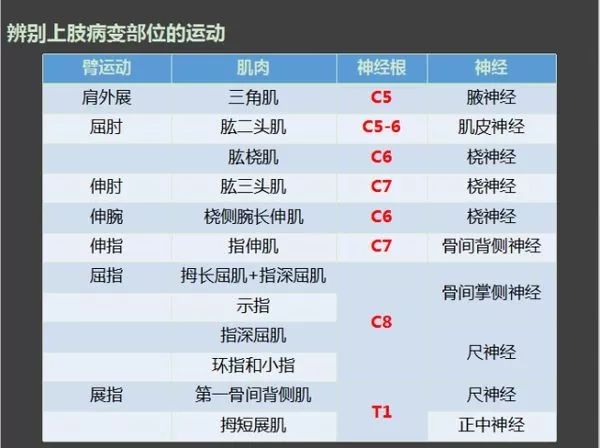 1级:简单粗暴,5大神经根对应5大神经、5大肌肉、5大动作。