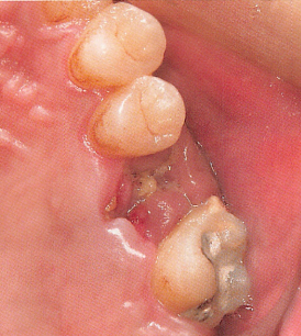 6.倒凹没有消除:埋伏牙的牙冠最大隆起部分没有露出,形成倒凹,不能拔出。