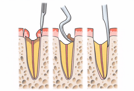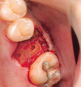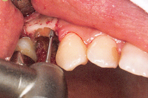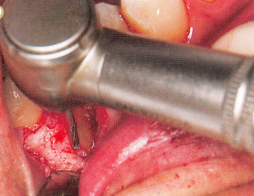 为了让挺子有效作用,在牙根与牙槽骨之间制备一道沟。需要有足够的深度。注意,如果沟的宽度太宽,就会太松,挺子会空转,效果降低。