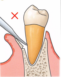 1.挺子的尖端没有进到牙周膜间隙内:切除牙龈暴露牙周膜间隙,或者用车针制备出与牙周膜间隙相当的沟。