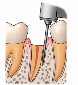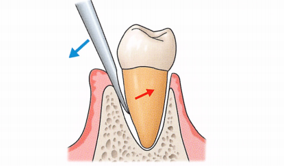 4.只在根方施加了向下的力:用轮轴(转动)作用一边扩大牙周膜间隙,一边尖端向根方进入。