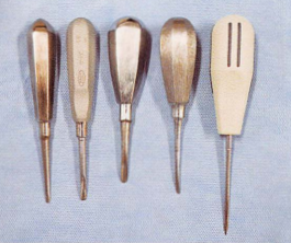 对于没有完全萌出的牙或残根牙,牙质脆弱等,拔牙钳子无法夹持而拔牙,这时就要用到挺子。挺子只是空转的话,牙是完全不会动摇的,但经常看见牙科医生反复持续做着这个动作,这是由于挺子没有充分地楔入牙周膜间隙,力量没有传递到牙上所造成的状态。