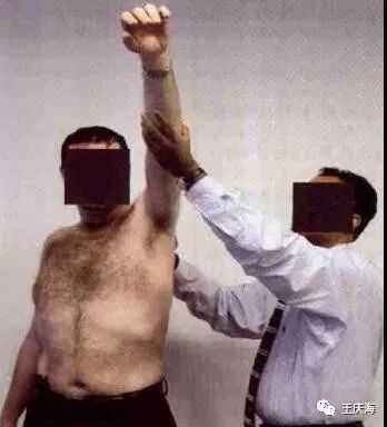 (1)痛弧征:敏感度很高。让病人外展肩关节,疼痛通常于外展45至90度时出现,在超过120度后减轻或消失。