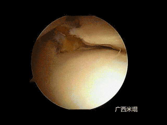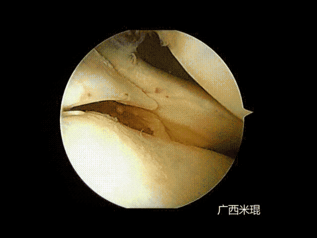 半月板桶柄状撕裂也很复杂,我们采用5号爱惜邦等缝线临时捆绑固定的方法,也可以将复杂的移位较远的半月板桶柄状撕裂转变为简单的纵形撕裂,简单的纵形撕裂对于大部分的医生来说都不是一件困难的事情!
