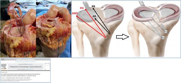 2017年Bancha等发表了多骨道缝合固定内侧半月板后根损伤的文章,有一个骨道的作用是缝合半月板后根,另一个骨道的目的是将半月板中心化。