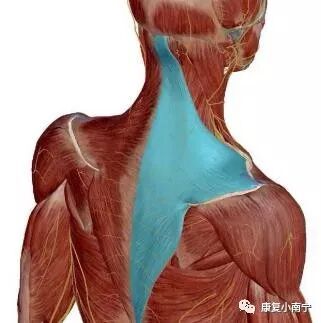 背阔肌是位于胸背区下部和腰区浅层较宽大的扁肌,起于 7-12 胸肋棘突、胸腰筋膜、髂嵴和下 3-4 肋,止于肱骨小结节嵴。