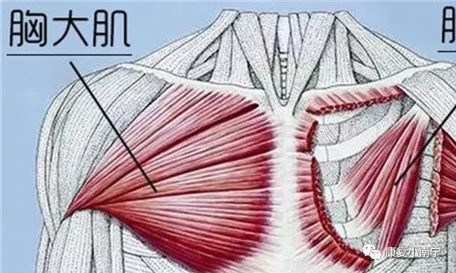 下斜方肌弱化会导致肩胛骨向前下方倾斜,同时胸小肌适应性缩短,患者呈现圆肩状态。