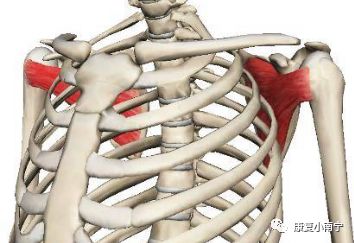 此外前锯肌还是导致肩峰撞击综合征的重要肌肉。肩峰撞击综合征会明显表现出一个“疼痛弧”,即患者外展未到 60 度时疼痛较轻,继续被动外展在 60 至 120 度时疼痛加重,继续上举超过 120 度时疼痛减轻,且可自动上举。因为前锯肌能使肩胛骨上回旋。治疗肩峰撞击综合征,不但要考虑松解使肩胛骨下回旋的肌肉,还需要考虑强化使肩胛骨上回旋的肌肉,其中前锯肌就是最重要的一块。