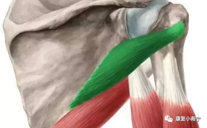 小圆肌位于冈下肌下方,冈下窝内。起于肩胛骨内侧 缘上三分之二背面,经肩关节后部,止于肱骨大结节下部。