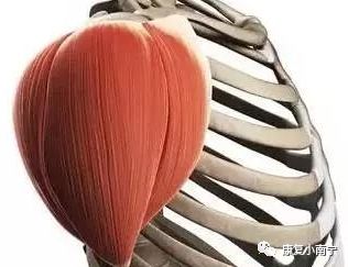 胸大肌是位于胸廓的前上部的肌肉,通常称为胸肌,呈扇型,起自锁骨内侧半,胸骨和第 1~6 肋软骨,肌束向外侧集中,止于肱骨大结节嵴。
