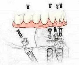 All-on-4种植技术是利⽤4颗种植体,于两颗前牙部位的种植体垂直植入牙槽骨内,而两颗中远部位的种植体采取倾斜角度植入牙槽骨内,然后在种植体的基台上安装“拱形连桥”牙冠,从而实现半口缺失牙的完全修复。