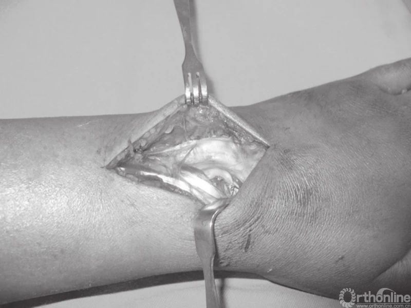图4 桡侧指伸肌腱上背侧骨膜袖