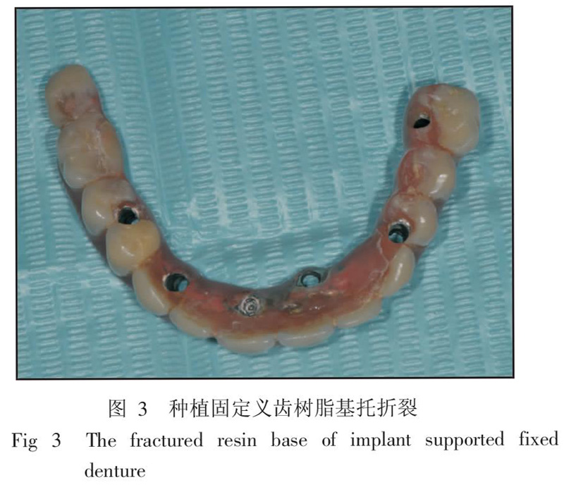 种植义齿金属表面不光滑或附着体精度不够,都会加快固位体的磨损,导致固位力下降或丧失,树脂基托强度不够而折断(图3)。
