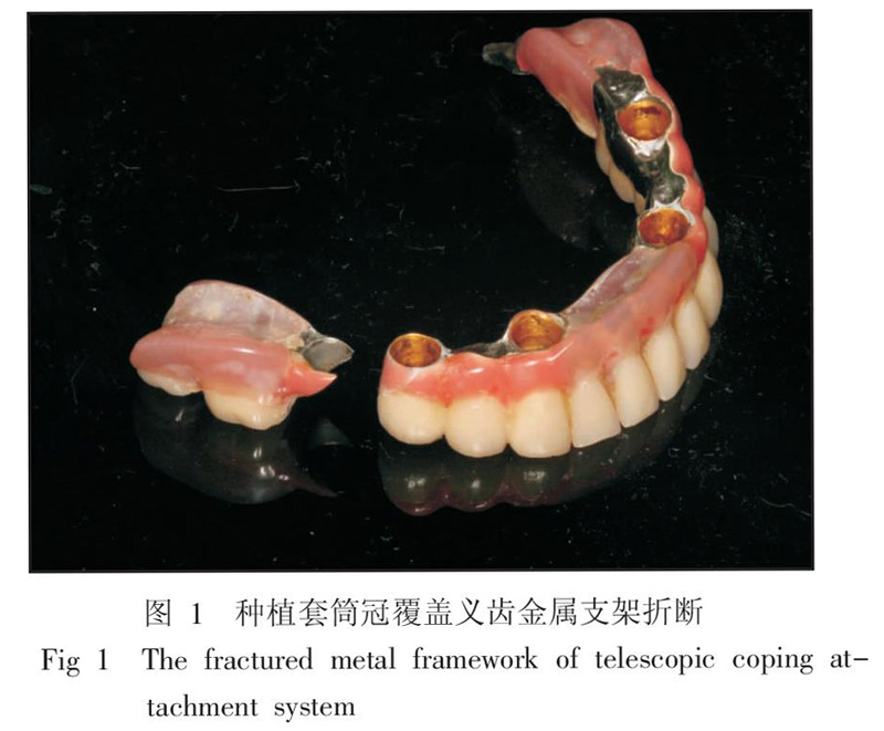 种植体与周围骨质形成骨结合以后,两者之间没有类似于天然牙牙周膜的缓冲结构,在行使咀嚼功能时,由于修复设计或患者自身等原因,致使咬合力过大和(或)有非轴向力时,可能会导致杆卡等固位体出现折断。