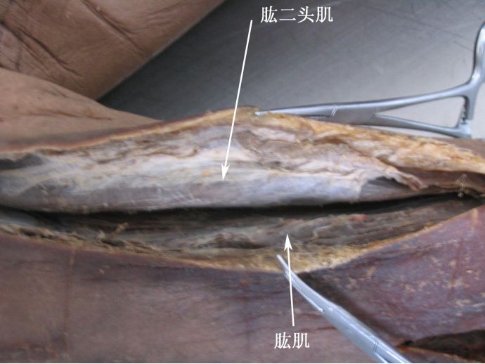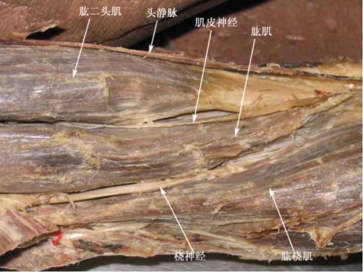 肱二头肌外侧沟下部还有前臂外侧皮神经走行。