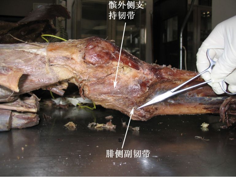 临床上所作的胫骨结节骨牵引部位与腓总神经关系。