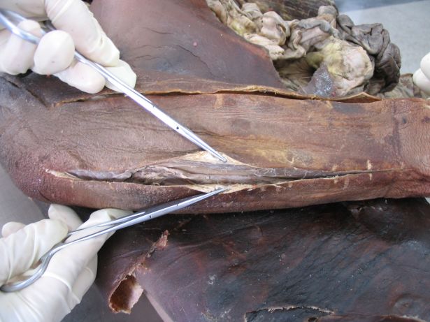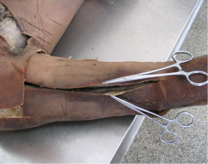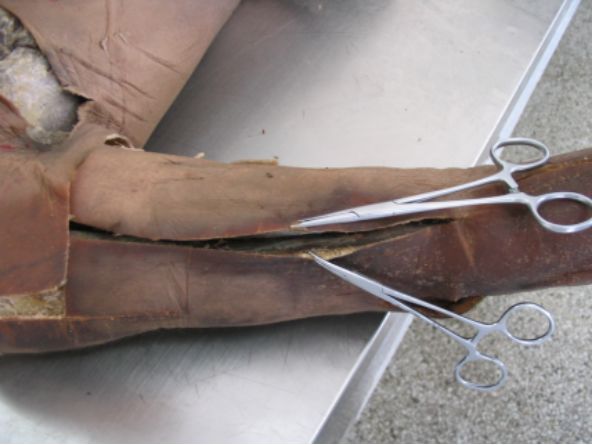 4、注意事项:大隐静脉在小腿内侧上行,浅层分离时易损伤,应注意保护。