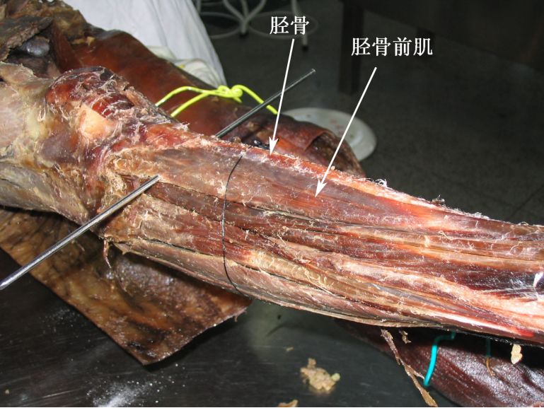 1、皮肤切口:在小腿前面作一纵向弧形切口,上端起于胫骨皮下面,弯越前缘,与前缘外侧平行向远侧延伸。