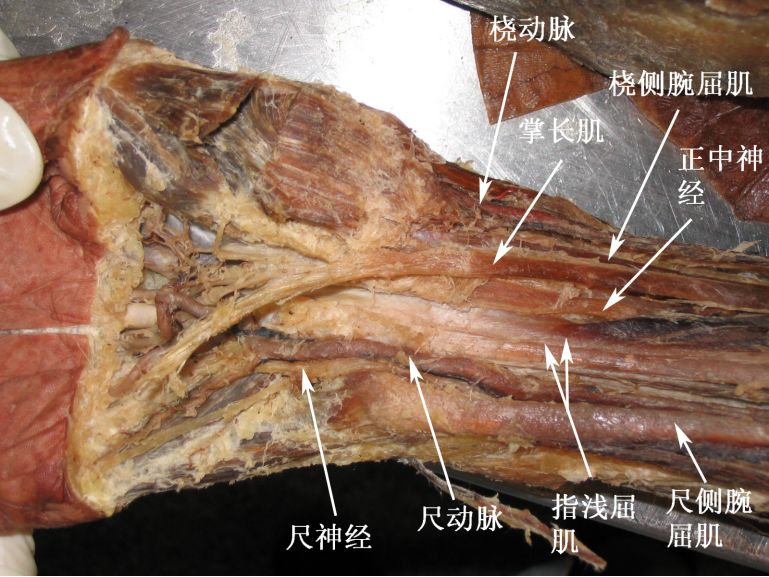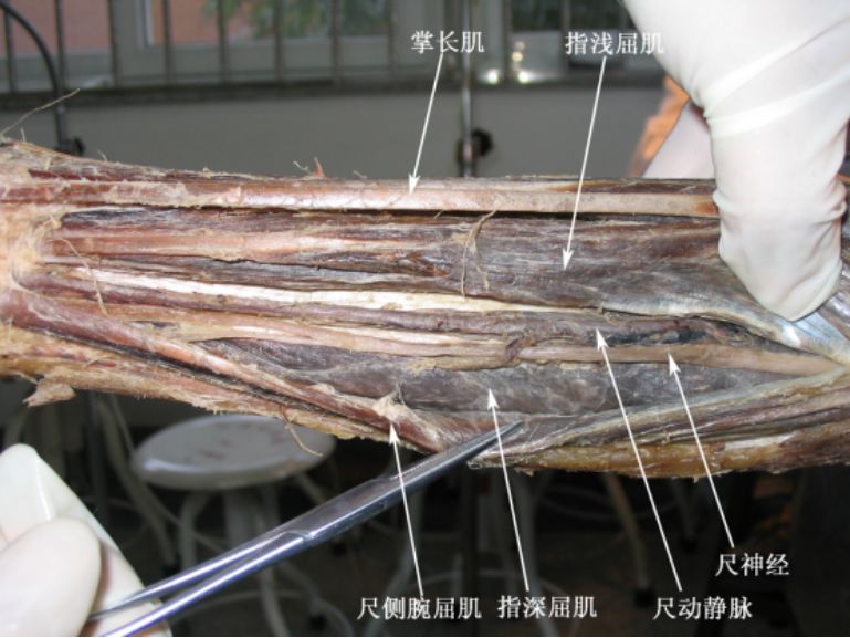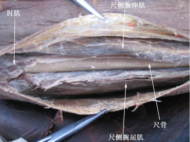 2、神经界面:界面位于尺侧腕、伸屈肌之间,前者为尺神经支配,后者为骨间后神经支配。