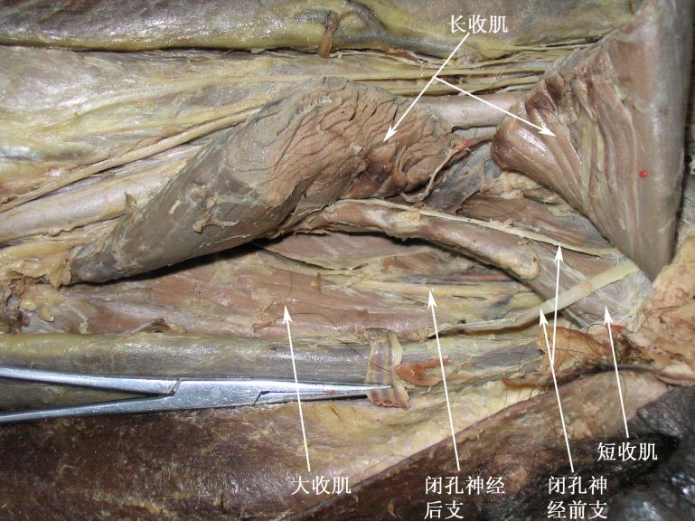 大腿肌内侧群:耻骨肌,长收肌,股薄肌,短收肌,大收肌--由闭孔神经支配。