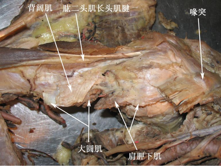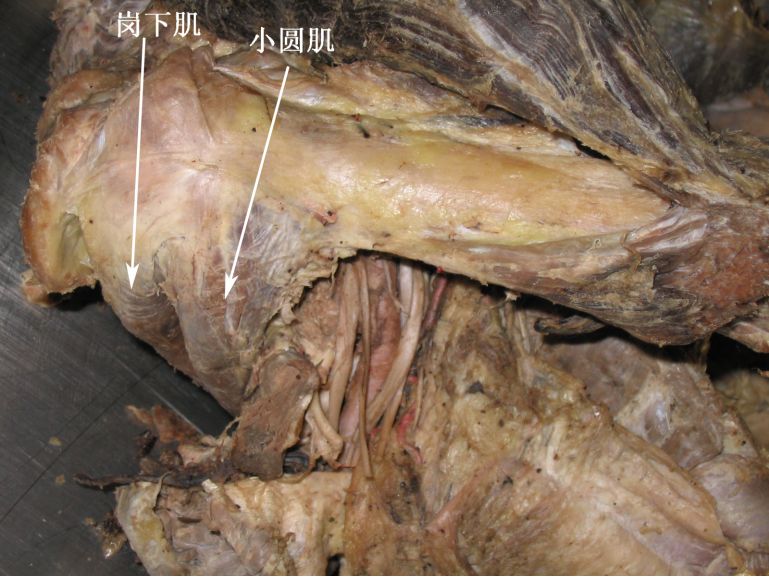 由于肱三头肌长头穿过大圆肌和肩胛下肌、小圆肌之间,其内侧为三边孔,有旋肩胛血管通过;肱三头肌长头与肱骨外科颈之间为四边孔,有腋神经及旋肢后血管通过。