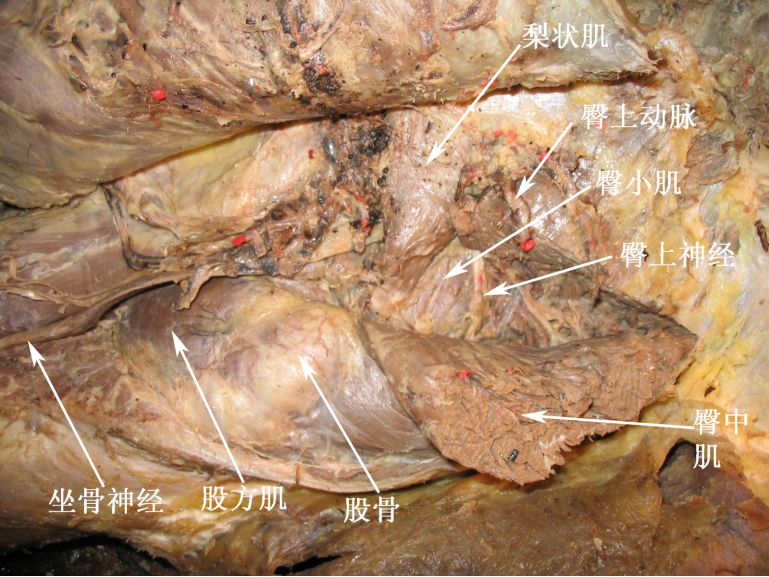 梨状肌上孔是梨状肌上缘的缝隙。通过梨状肌上孔的血管神经,由外侧向内侧依次为:臀上神经、臀上动脉和臀上静脉。