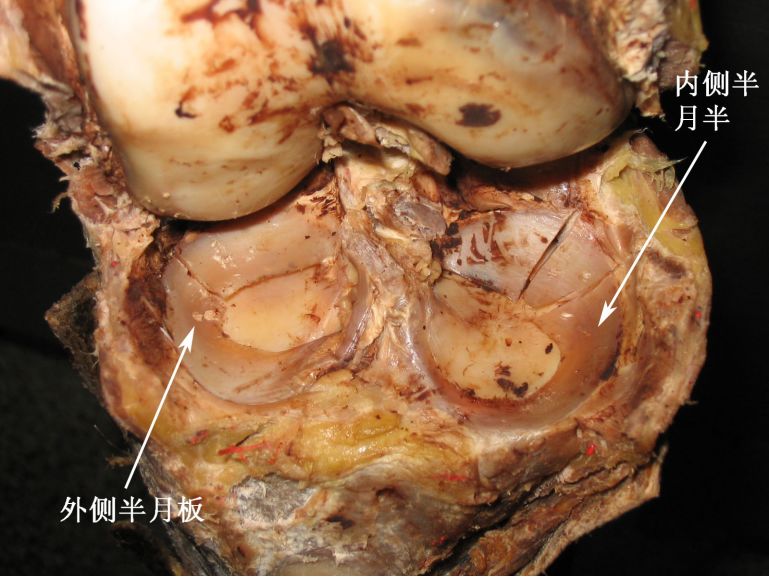 半月板:有内侧半月板和外侧半月板。内侧半月板呈”C”形,外侧缘与胫侧副韧带后份紧密相连,故胫侧副韧带损伤常合并内侧半月板撕裂。外侧半月板近似“O”形。半月板的主要功能是加深胫骨髁的关节面,使膝关节更加稳定,同时有一定的活动性,并且具有负重和缓冲振荡的作用。