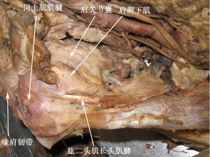 在肩关节上方,有肩峰、喙突及喙肩韧带共同构成的“喙肩弓”保护。