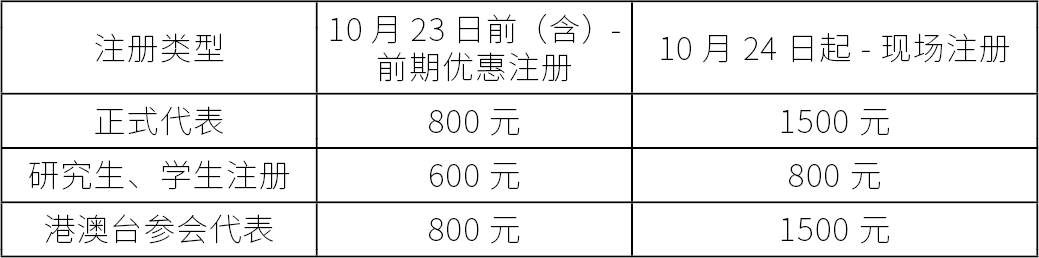 2.会议注册以交费时间为准,只有在10月23日(含)前交纳注册费的代表方可享受前期优惠注册价格,10月24日起,会议注册费将自动变为现场注册价格。