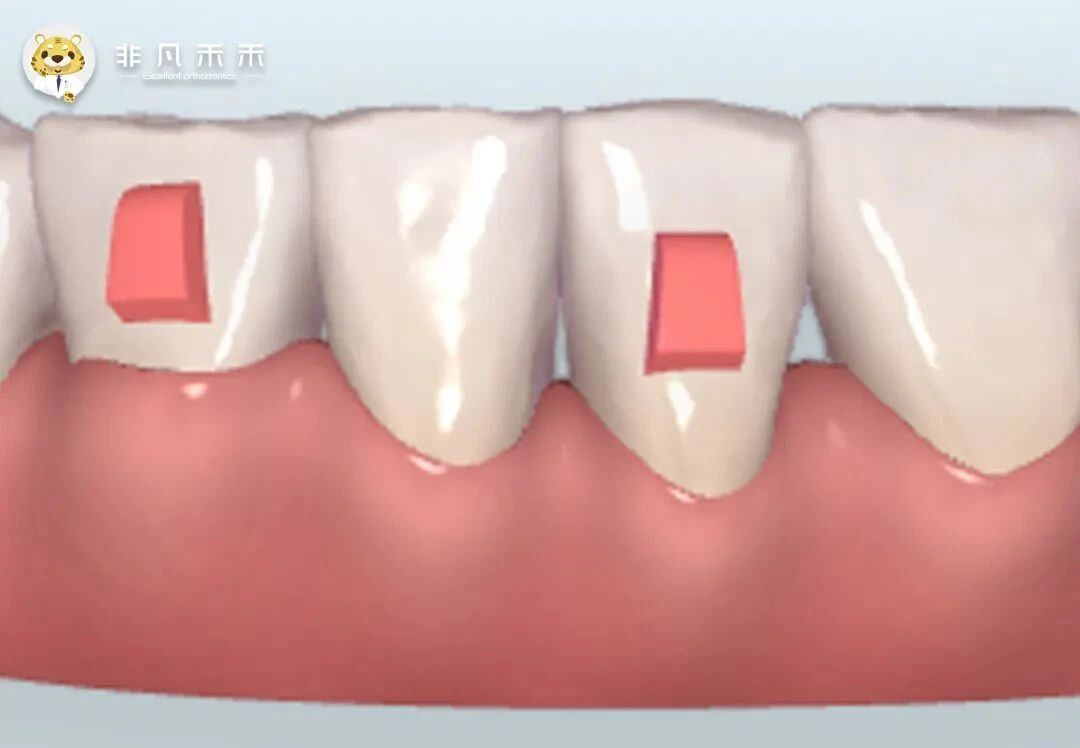②升高牙齿:附件粘固于需要升高的牙齿上,增加摩擦力,辅助移动。