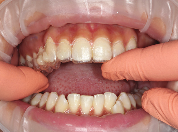 根据附件定位模板确认附件形态及牙体上的粘接位置