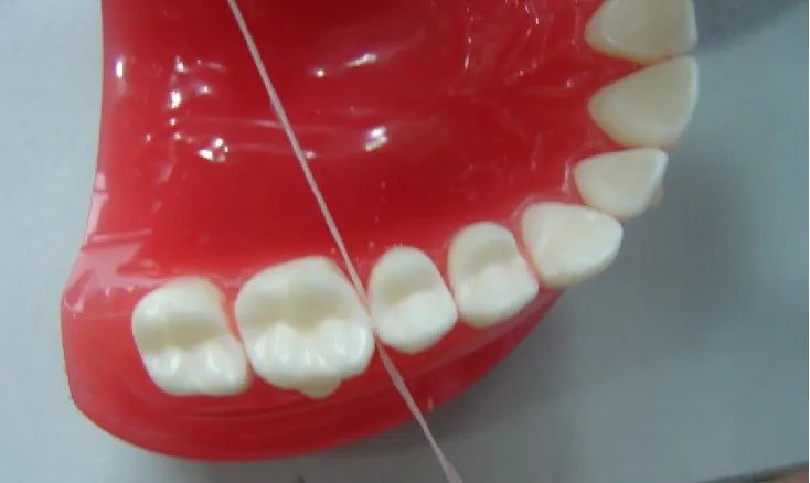3、以最细的砂条磨开邻面接触区。轻力地钟摆式移动,直至砂条能自由通过接触区为止。