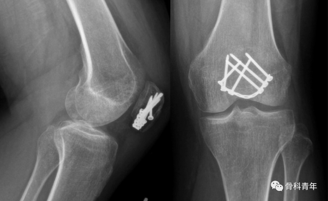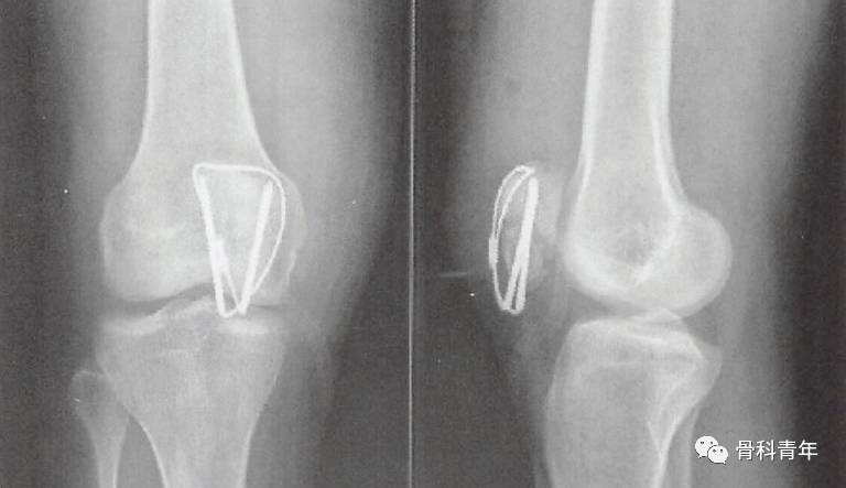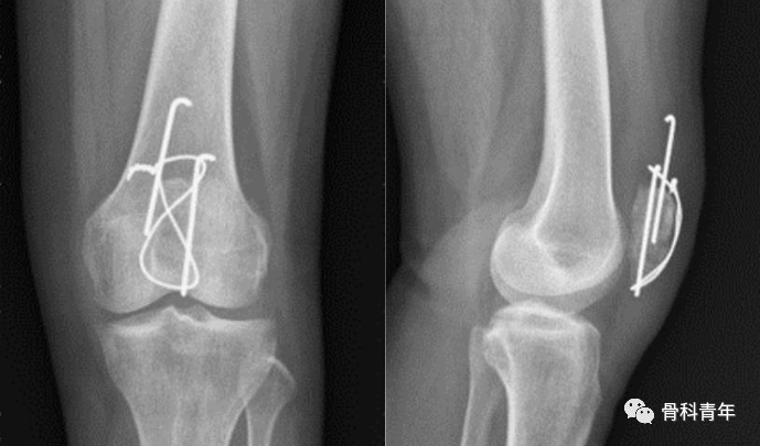 但克氏针张力带导致的退针问题仍不可忽视。为了避免这个问题,有学者采用缝线替代钢丝,空心螺钉替代克氏针,取得了良好效果。在一项纳入949例患者的meta分析中发现,张力带固定的并发症发生率更高,采用替代固定方法治疗的患者具有更好的屈曲活动范围、疼痛评分(视觉模拟评分)和膝关节功能评分。