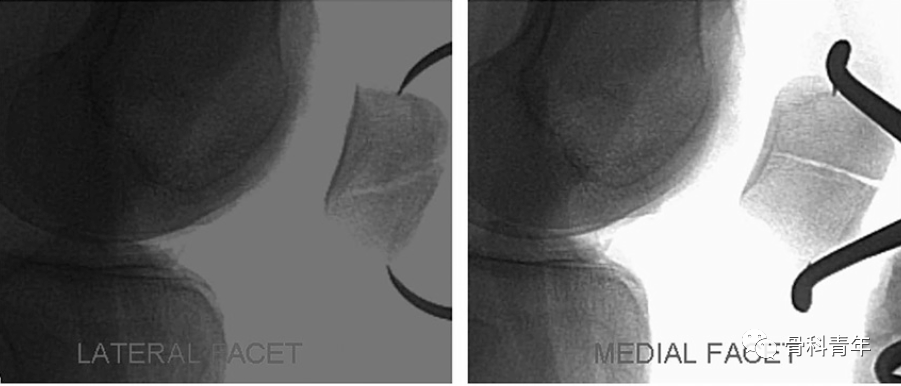 有学者研究表明,在髌骨外旋24°可在侧位上评估外侧关节面复位情况,内旋34°可以评估内侧关节面情况。