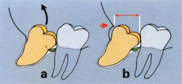 - 冠周有足够的空间便于牙冠向远中方向脱位。