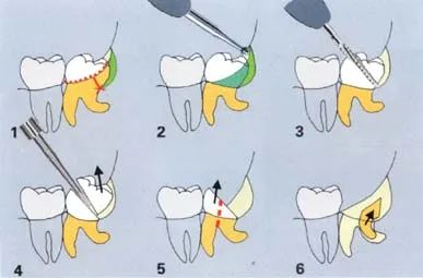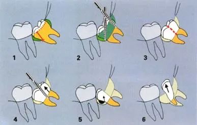 部分远中阻生的左下颌第三磨牙的拔除步骤: