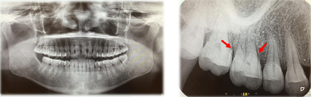 X线检查:16近远中牙周膜影像增宽,余牙未见明显异常。