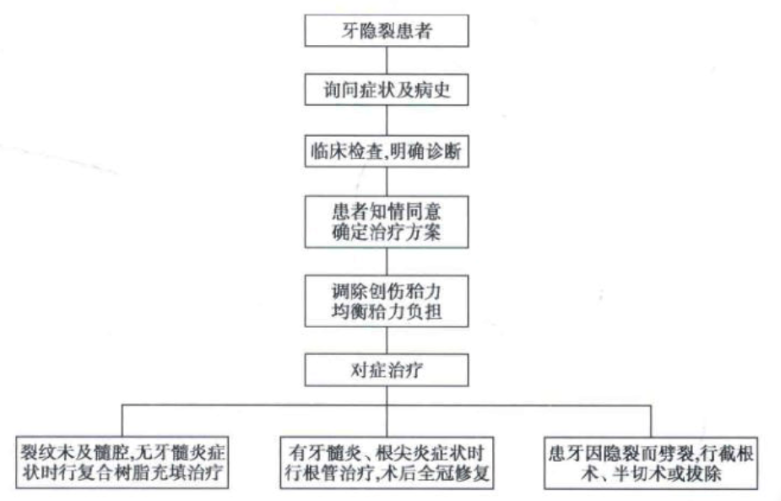有学者指出,全科医生和专科医生对牙隐裂制定的治疗计划存在很大差异,因此确定指导准则和依据就显得尤为重要。牙隐裂的治疗策略主要依据影响其疗效的因素来制定,根据这些因素确定治疗方案才能获得更好的疗效和预后。