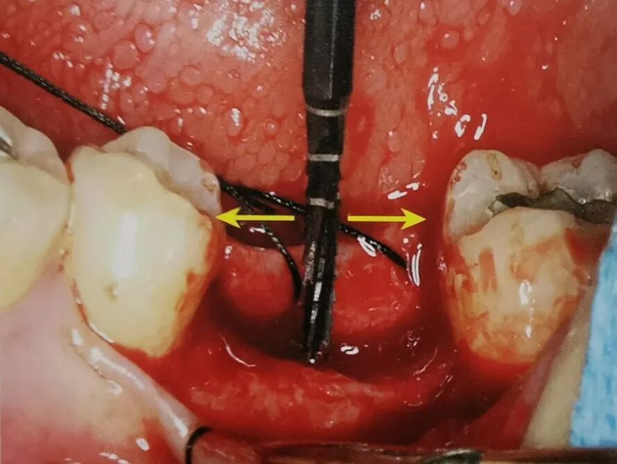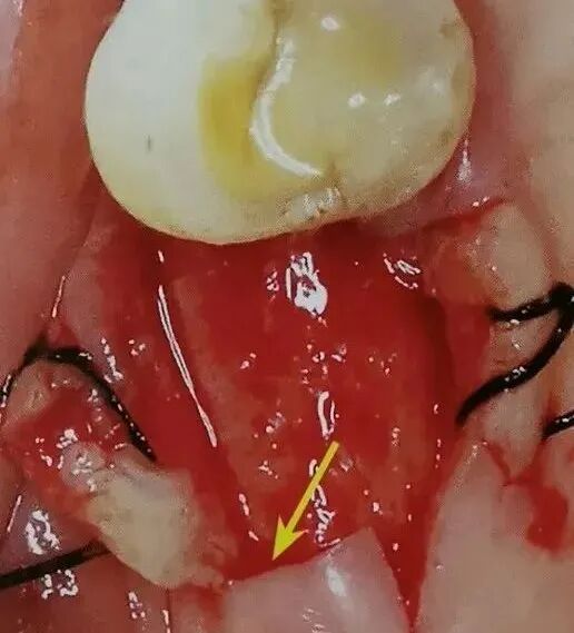 1、切开翻瓣时要注意切口应在角化龈范围内,骨面若有肉芽组织需要去除干凈,骨面不平整的情况用球钻合理修平。