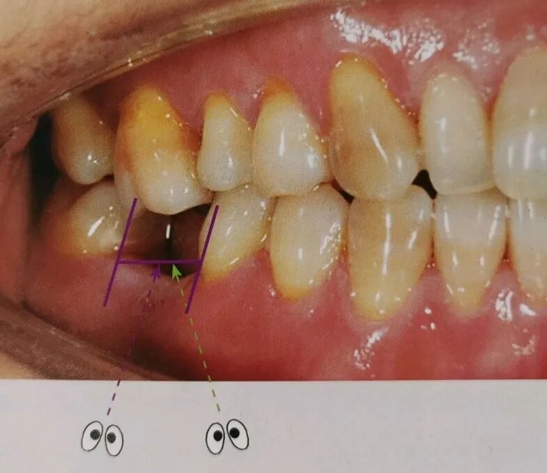 (图中紫色线目标为正颊侧观察 绿色线则为颊侧偏前方观察)