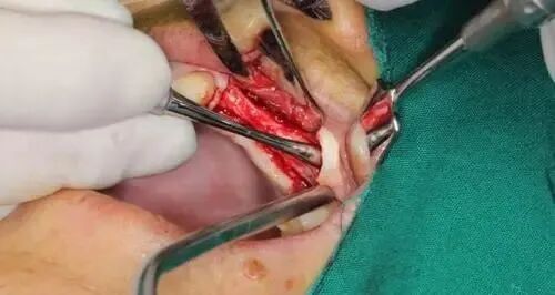 准备刀柄,刀片,缝针,缝线,单斜面凿,一管NS。配合:去骨时选择单斜面凿,击锤要轻,可连续叩击,也可多次重复,同时也要托护下颌角。