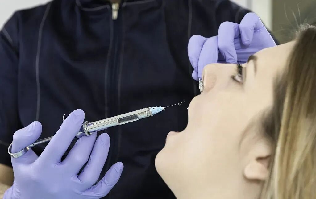 6)1%碘酊传递给医生进行口腔粘膜及口周皮肤消毒,检查抽吸好的空针,针栓与针乳头衔接是否紧密再传递给医生进行注射。