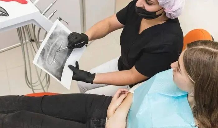 (3)协助医生仔细认真检查核对要拔的牙位,拔牙的原因,打开X光片桌面,供医生参考。
